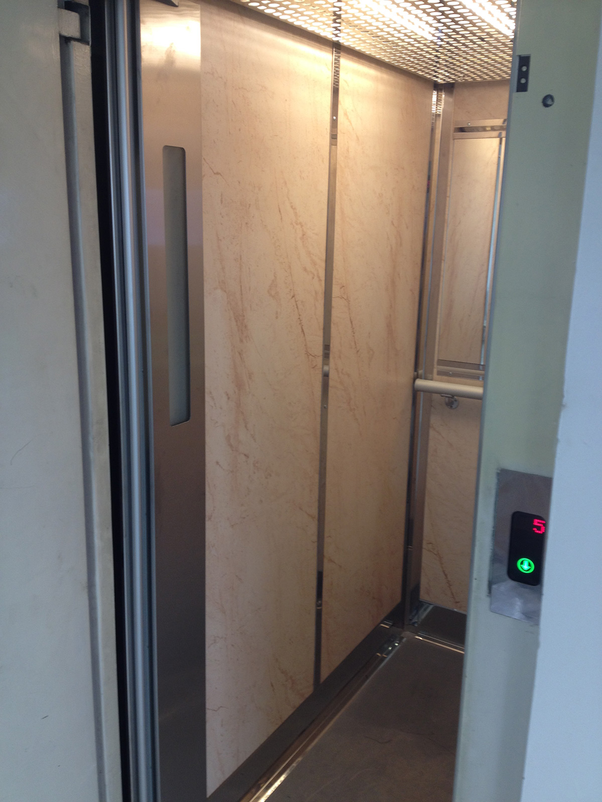 fülkeajtó beépítés, felvonó felújítás, felvonó fülke burkolás