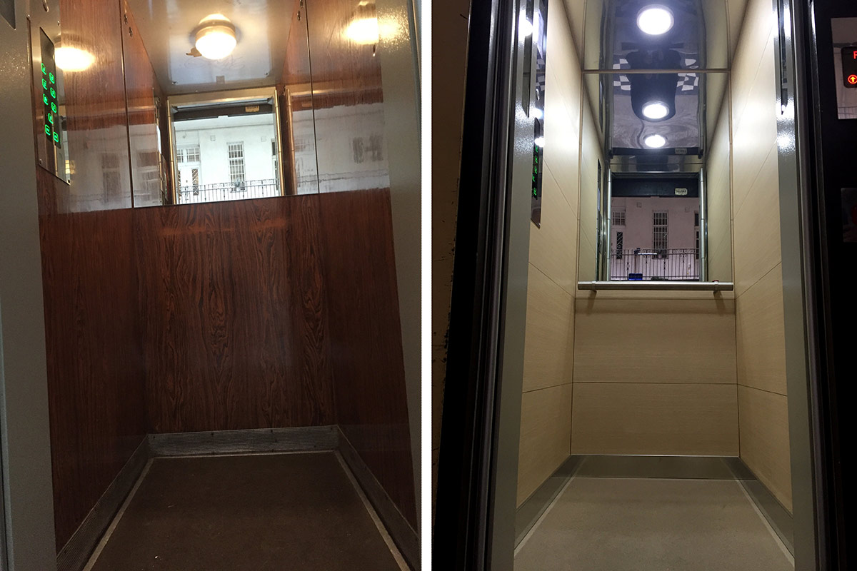 Felvonó vezérlés cseréje, modernizáció és felvonó fülkék esztétikai felújítása.